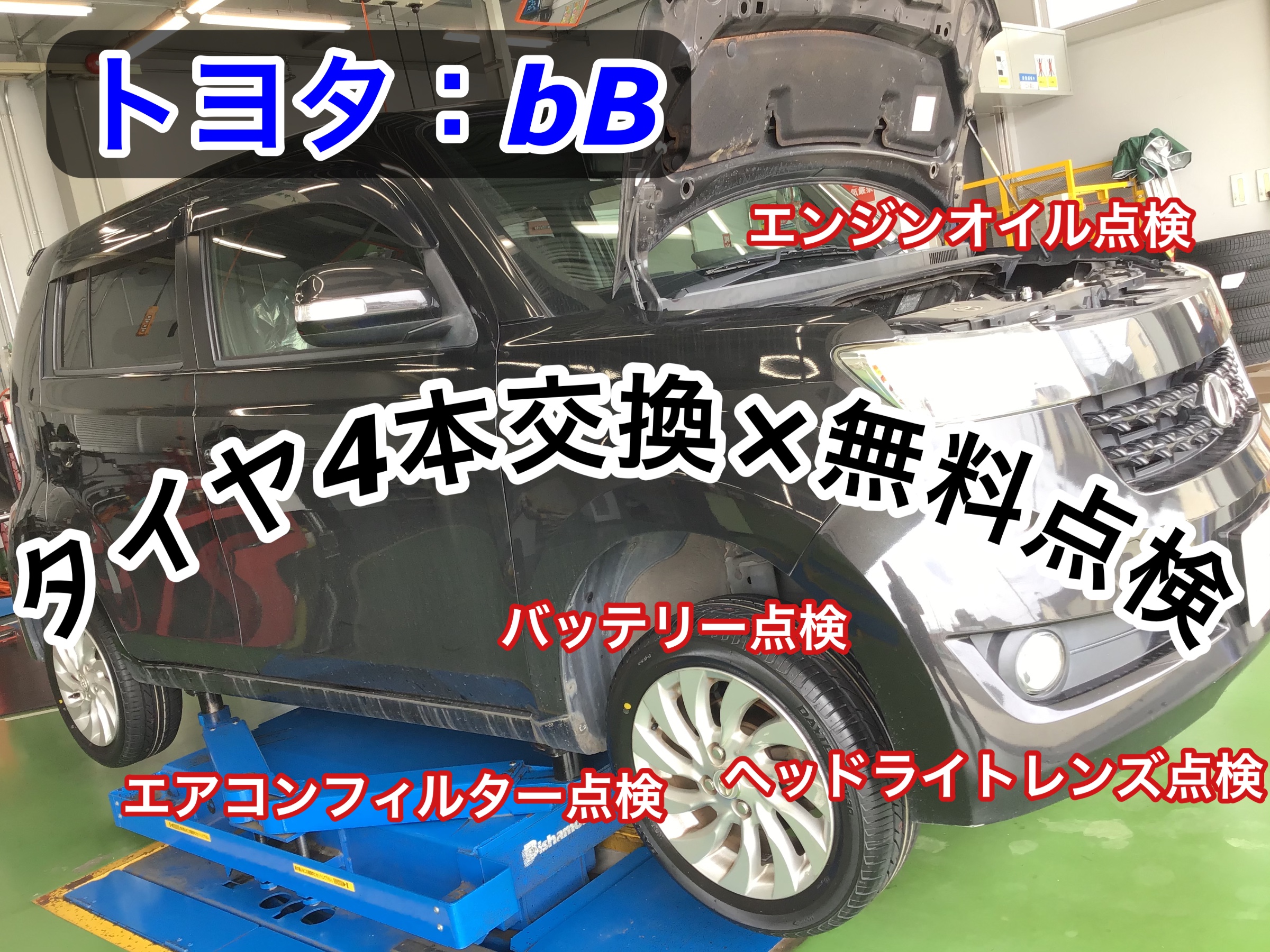トヨタ:bB】タイヤ4本交換×無料点検後の追加交換作業 トヨタ bB